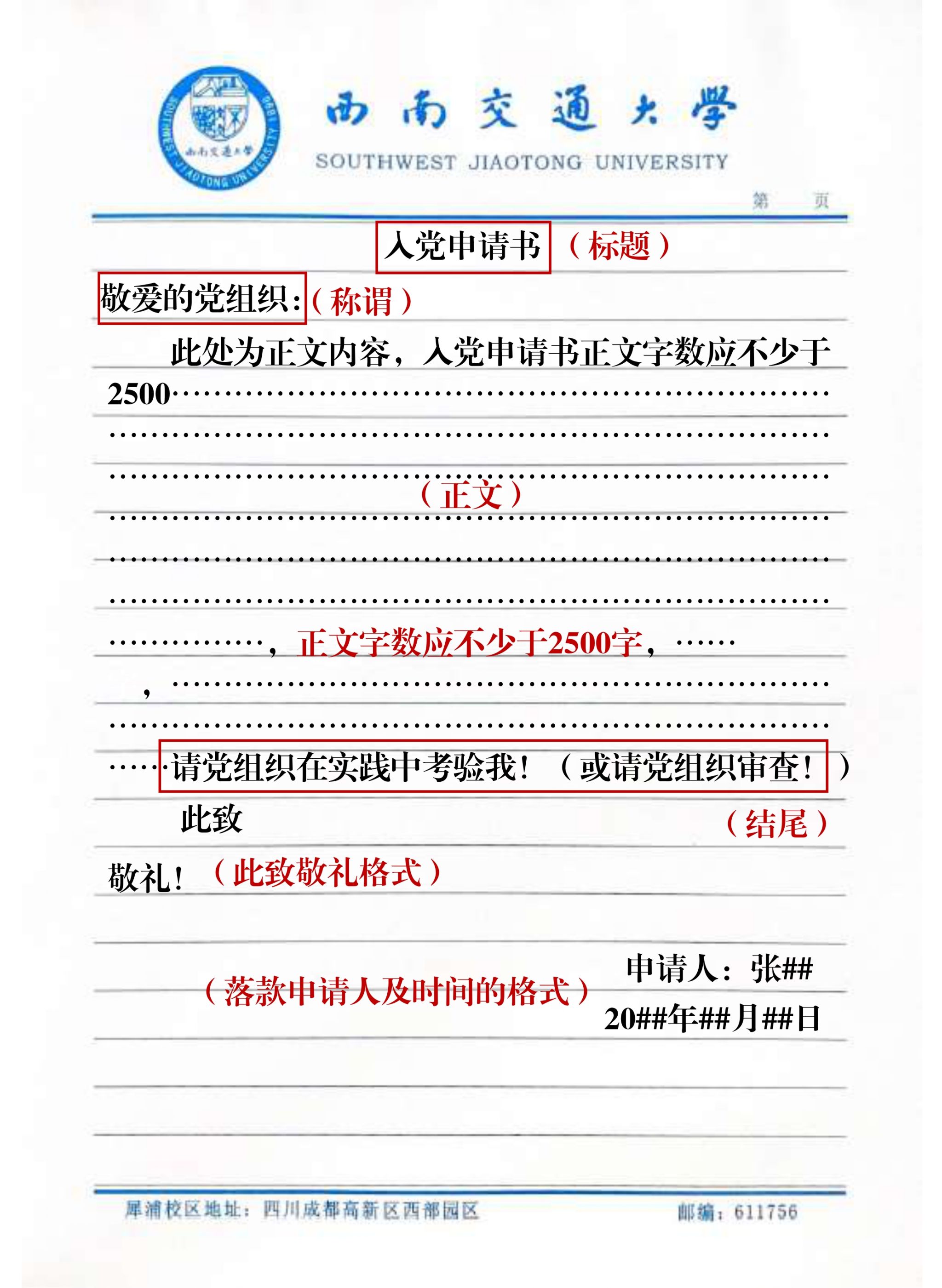 4.入党申请书要写得朴实、庄重,符合个人真实情况,不要刻意追求华丽的词句,更不得随意网上抄袭复制。