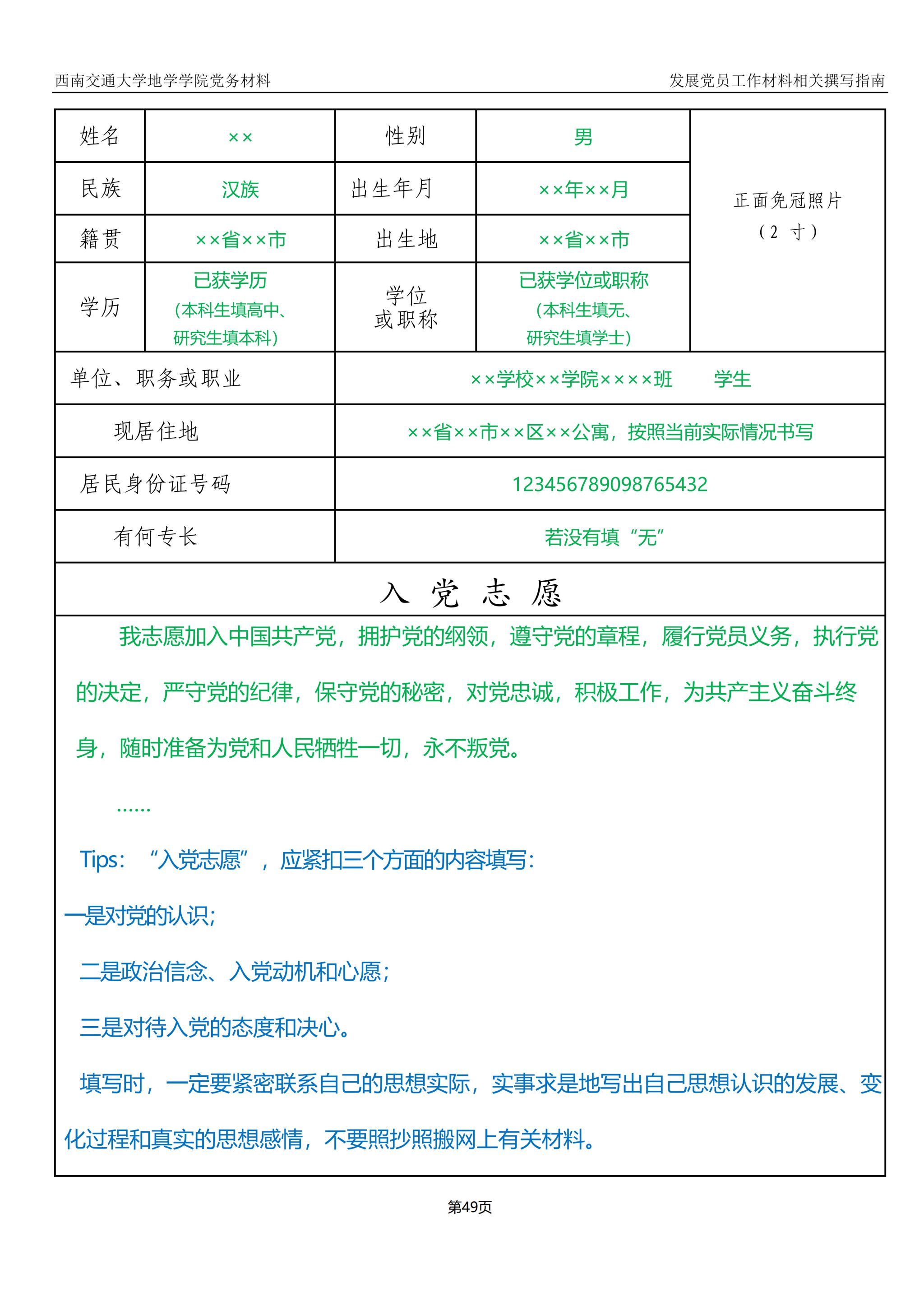入党志愿书原件每人仅有一份,请同学们规范填写,认真对待!