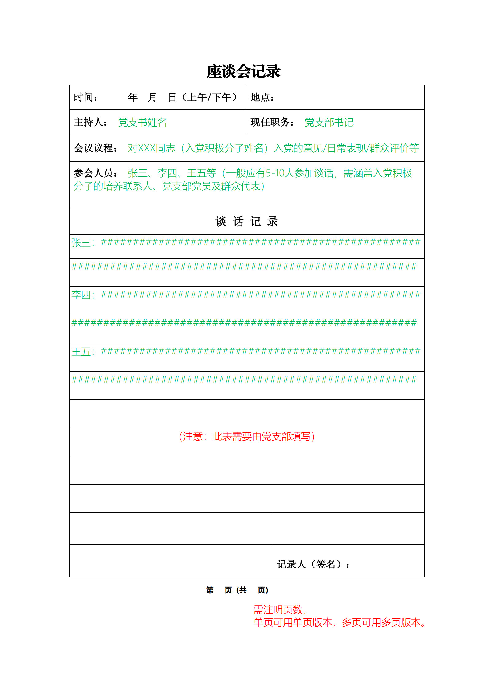 确定为党员发展对象前党员、群众意见座谈会记录表撰写指南: