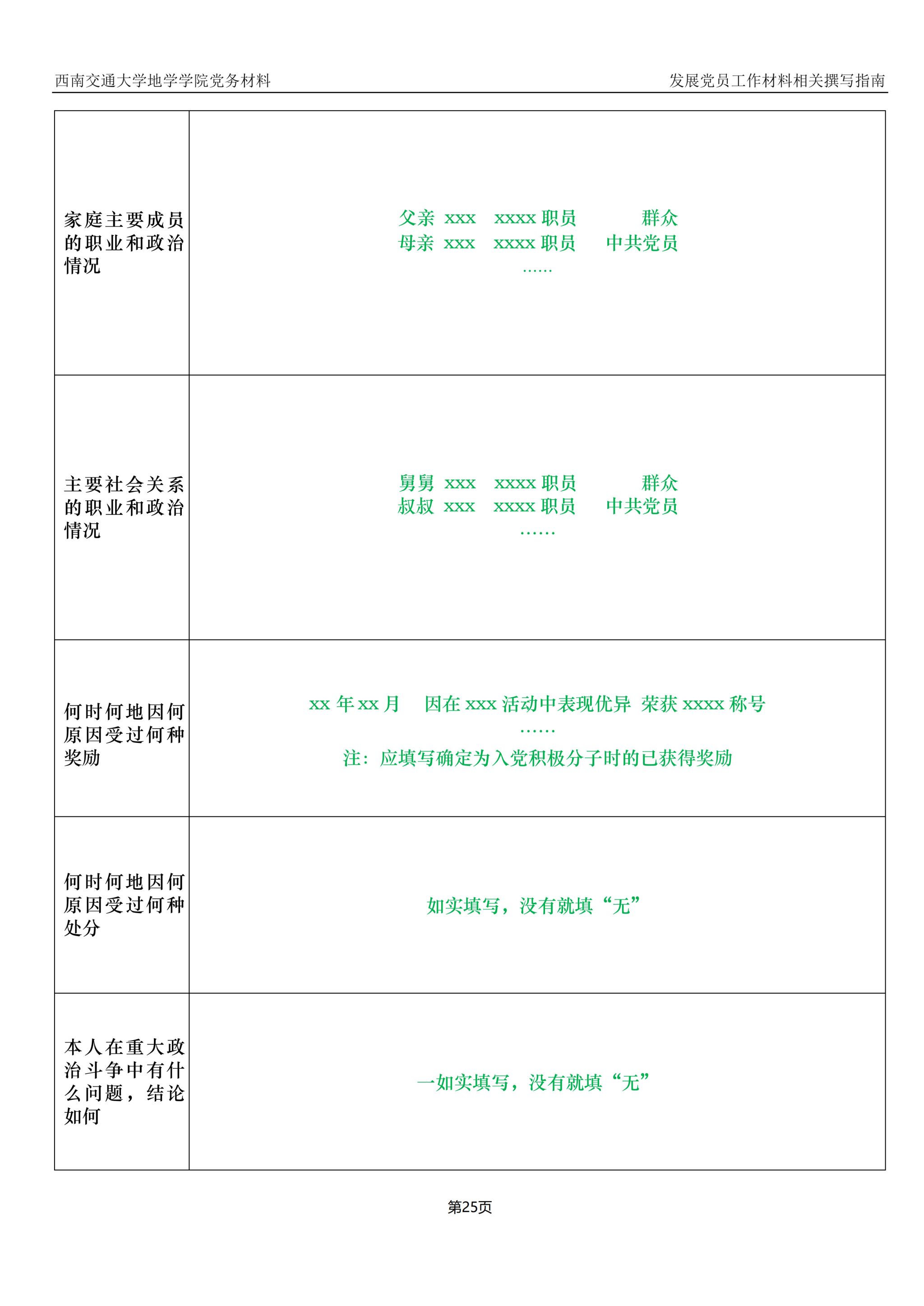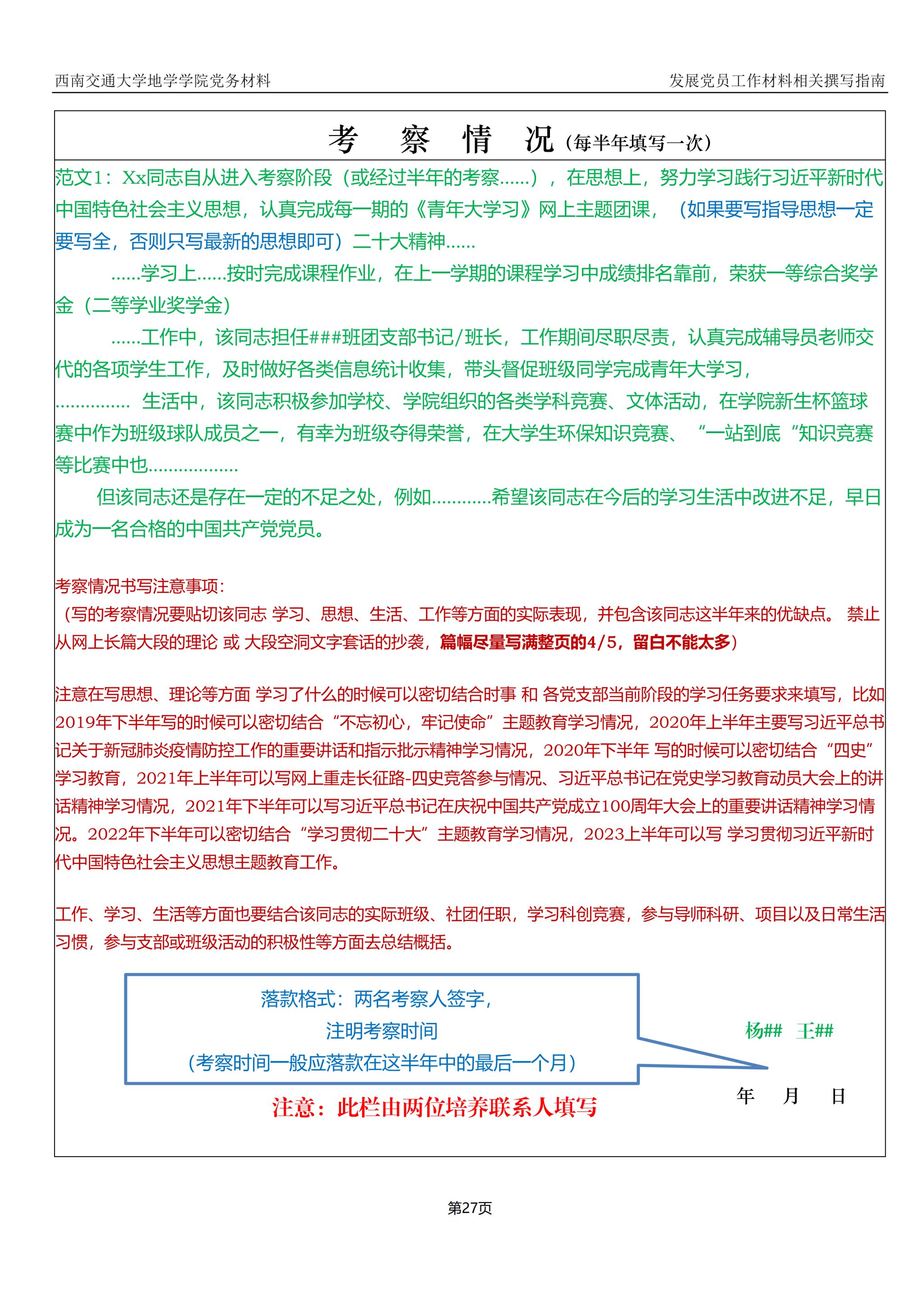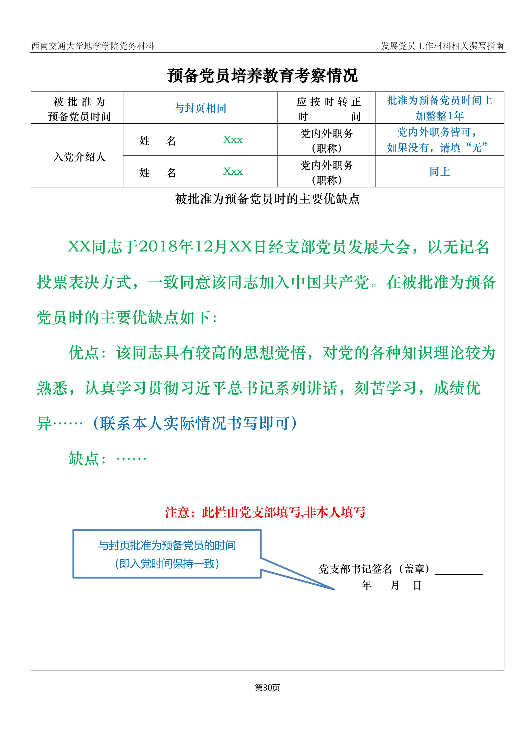 入党积极分子、发展对象、预备党员培养教育考察登记表撰写指南: