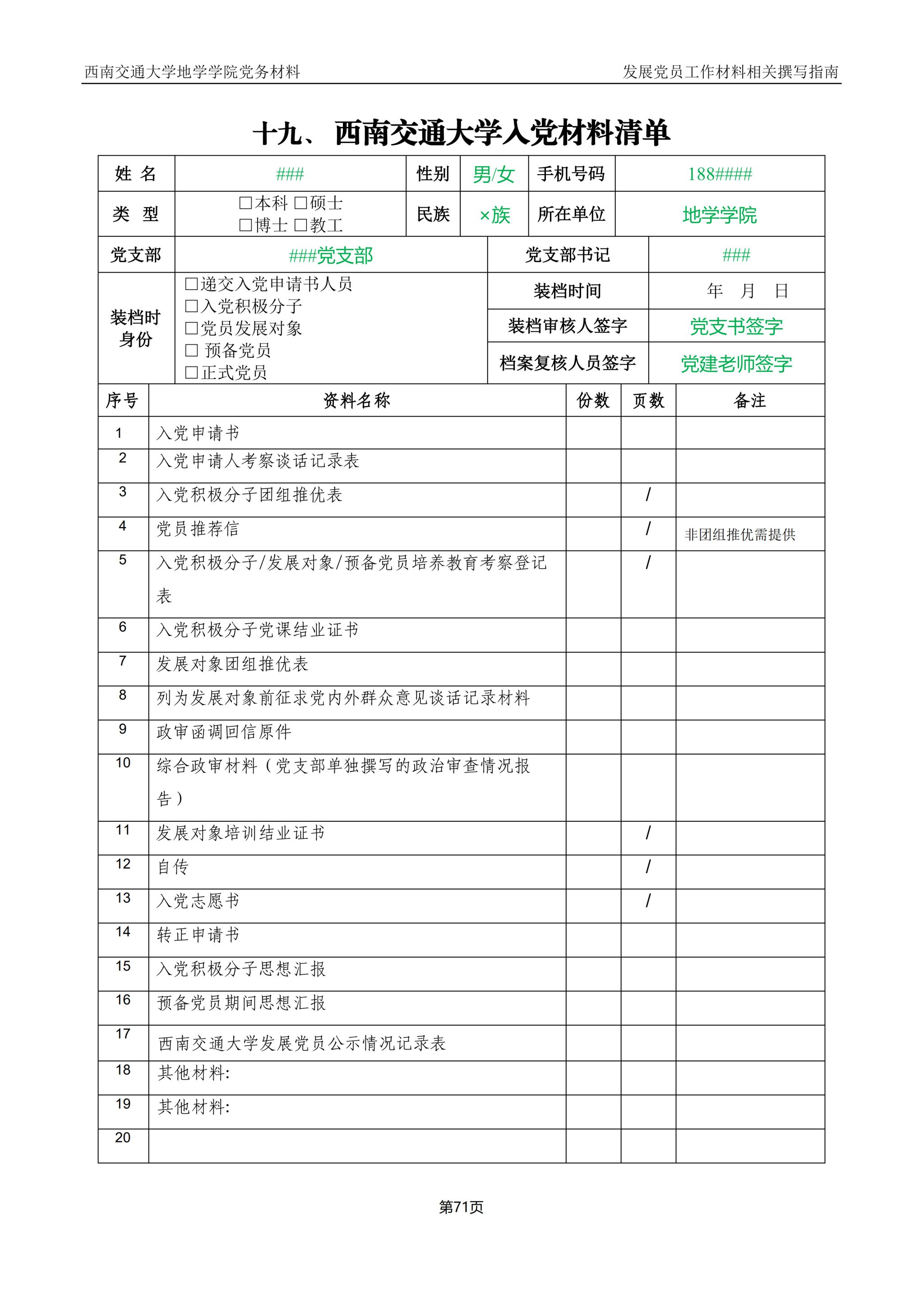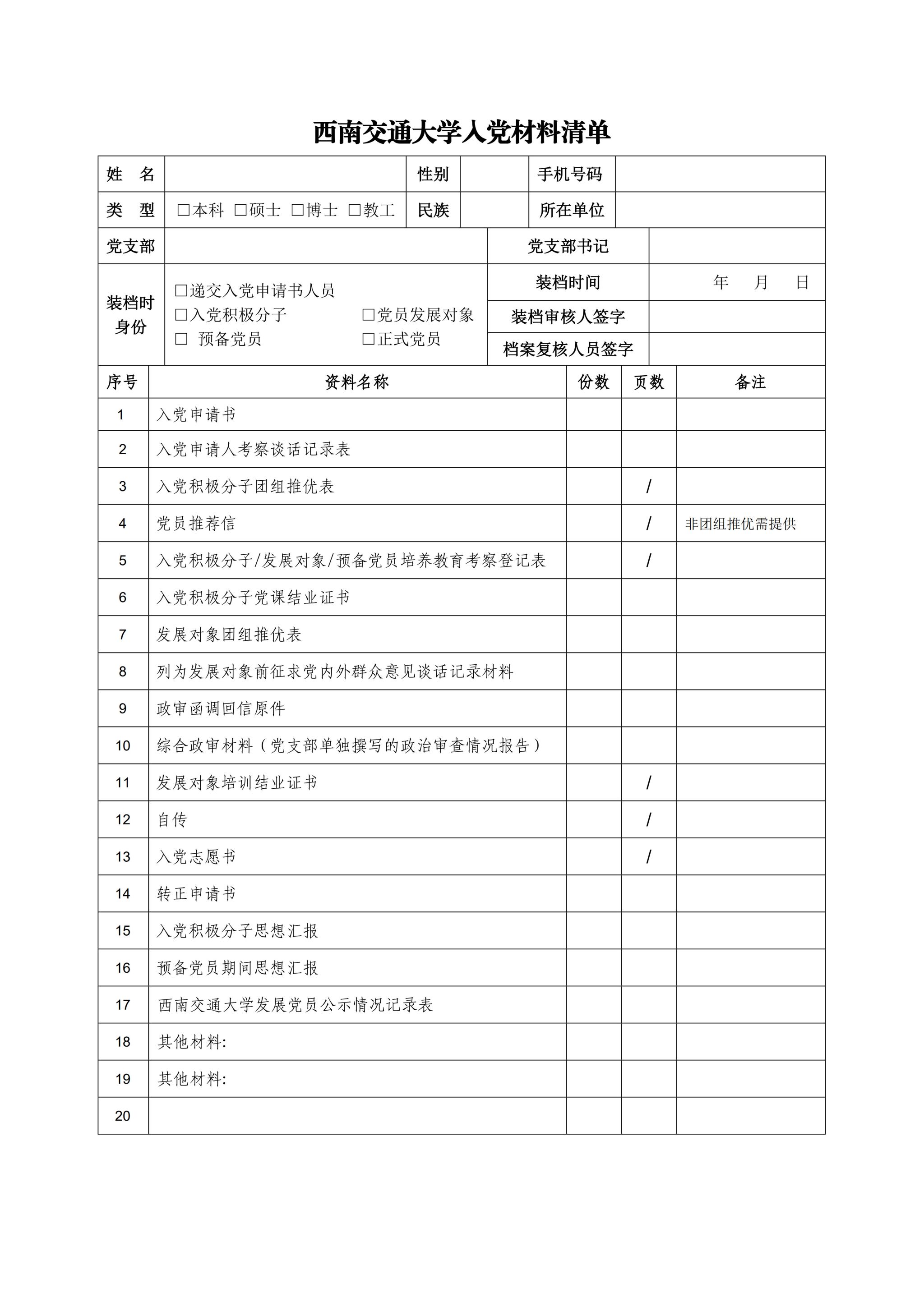 蘑菇视频 入党材料清单样例:
