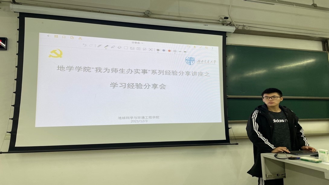 学习与科创中心分别邀请2018级环境工程专业崔耀丹(推免至南京大学)分享保研经验,2019级地质工程专业排名第一、国家A类竞赛获得者叶志虎分享科创经验。