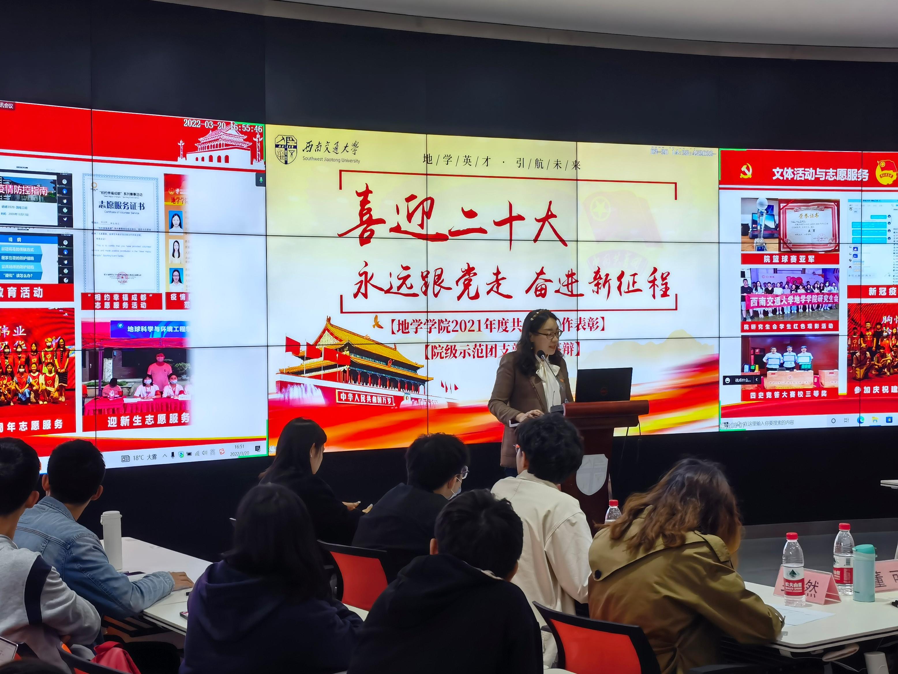 团委于2022年3月20日在犀浦校区X4243教室举行2021年度院级示范团支部答辩会,答辩会采用线上加线下相结合的方式。地球科学与环境工程学院团委书记杨都强,院团委副书记翟琦、李婧、董可,学生园区与事务中心指导老师王琼,学习与科创中心指导老师梁爽,青年志愿者协会指导老师罗然,团建中心指导老师赵瑞涵,学生党建工作老师刘礼钊、史可心出席并担任评委,2018级、2019级和2020级本科生及研究生共10个团支部参与答辩。本次答辩会由李宝贤主持。
