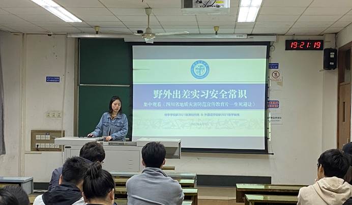 此外,陈雅雪同学还通过播放《四川省地质灾害防范宣传教育片—生死避让》,向同学们介绍地质灾害对生命财产安全的严重威胁,并讲解了面对地质灾害时的紧急应对措施。
