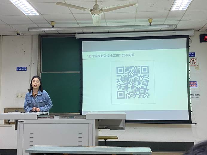最后,为了巩固此次安全教育活动成果,陈雅雪同学组织同学们扫码参与了“防诈骗及野外安全常识”知识问答,同学们积极参与。不少同学表示,问答内容问题设置灵活多变,丰富有趣,参与这样的趣味问答既收获了乐趣,又提高了对于电信诈骗、灾害防范的安全意识。