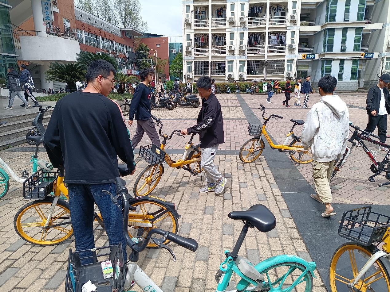 本2019级地质第四团支部通过在一食堂门口摆放共享单车的形式开展了本次“喜迎二十大,青春在行动”主题实践团日活动。在学习之余,我们也应该力求从身边的每一件小事做起,让文明有序潜移默化进我们的生活学习中,提升校园形象的同时增强自我的修养,做一名合格的青年大学生。