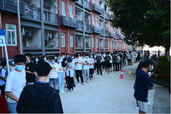 多日小雨的成都终于放晴,同学们内心的热情像天气一样,期待着活动的开展,甚至有跟工作人员一同早起排队的同学,不到十点,端午节文化体验活动的“小驿站”旁就排起了长长的队伍,大家满心欢喜等待活动开始。没过多久,许多同学都被吸引过来,在工作人员的指引下,同学们佩戴口罩、有序排队,切实做好疫情防控安全保障。