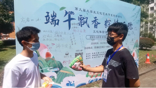 张同学表示:参加本次活动感觉非常开心,游戏挺新颖的,奖品也很喜欢,所以一大早就在等着活动开始了。我第一个参加的是制作五彩绳,一开始不会编,但是有工作人员在一旁教就学会了。我觉得这个活动可以很好的给同学们传播端午节相关知识,感受端午文化,它让我们理解到传统节日带给我们的不仅仅是几天的假期,而是包含着深厚文化底蕴。