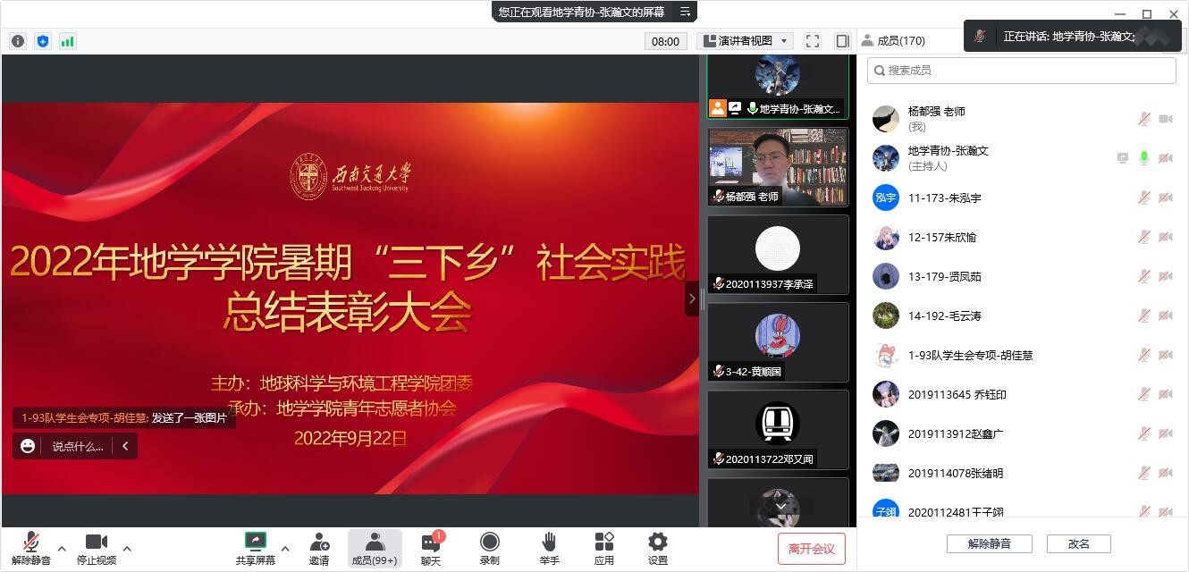 2022年9月22日下午13:30分,地球科学与环境工程学院2022年暑期“三下乡”社会实践总结表彰大会于腾讯会议线上顺利举行。蘑菇视频