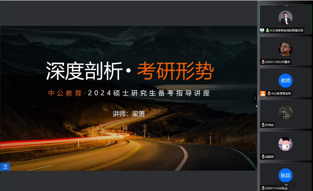 团委班级联合会与就业指导中心,联合中公教育通过线上指导的方式共同开展了“一研为定”系列讲座,为学生升学深造助力。