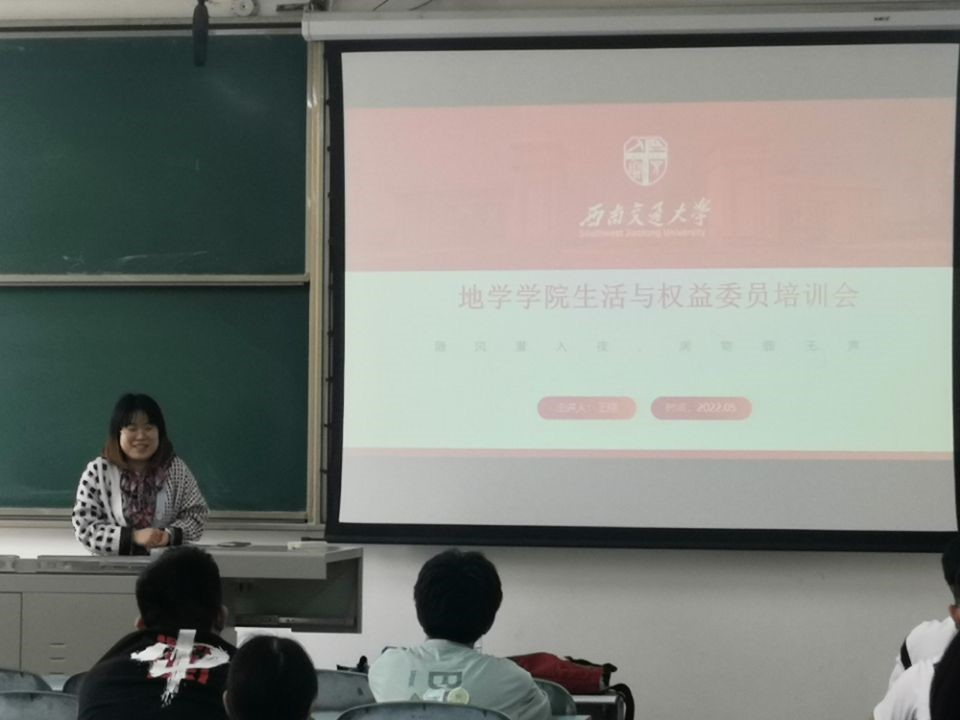 会议第二项,由王琼老师对权益与生活委员进行培训。王琼老师明确讲解了权益与生活委员的职责,希望各位生活委员能够主动与同学沟通,贴近同学生活,收集同学们在生活中的问题并积极联络学生会权益服务部同学共同解决,架好班级与学院之间的桥梁纽带。