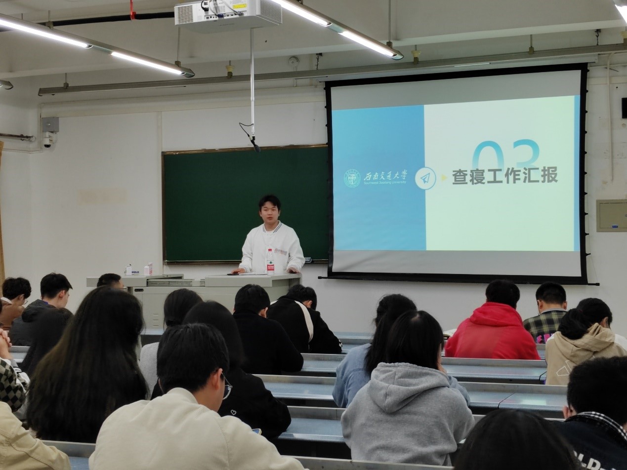 会议结束前,学生园区与事务中心的指导老师吴昌浩对开学以来的首次查寝工作进行汇报,对学生公寓卫生管理、秩序管理、安全管理等问题做了进一步讲解,并着重强调了学校关于寝室禁用违规电器的相关条例,在现场结合同学们反馈的实际情况进行分析讲解,表示寝室安全是学院生活工作的一条红线,需要同学们牢记寝室安全工作,警钟长鸣。