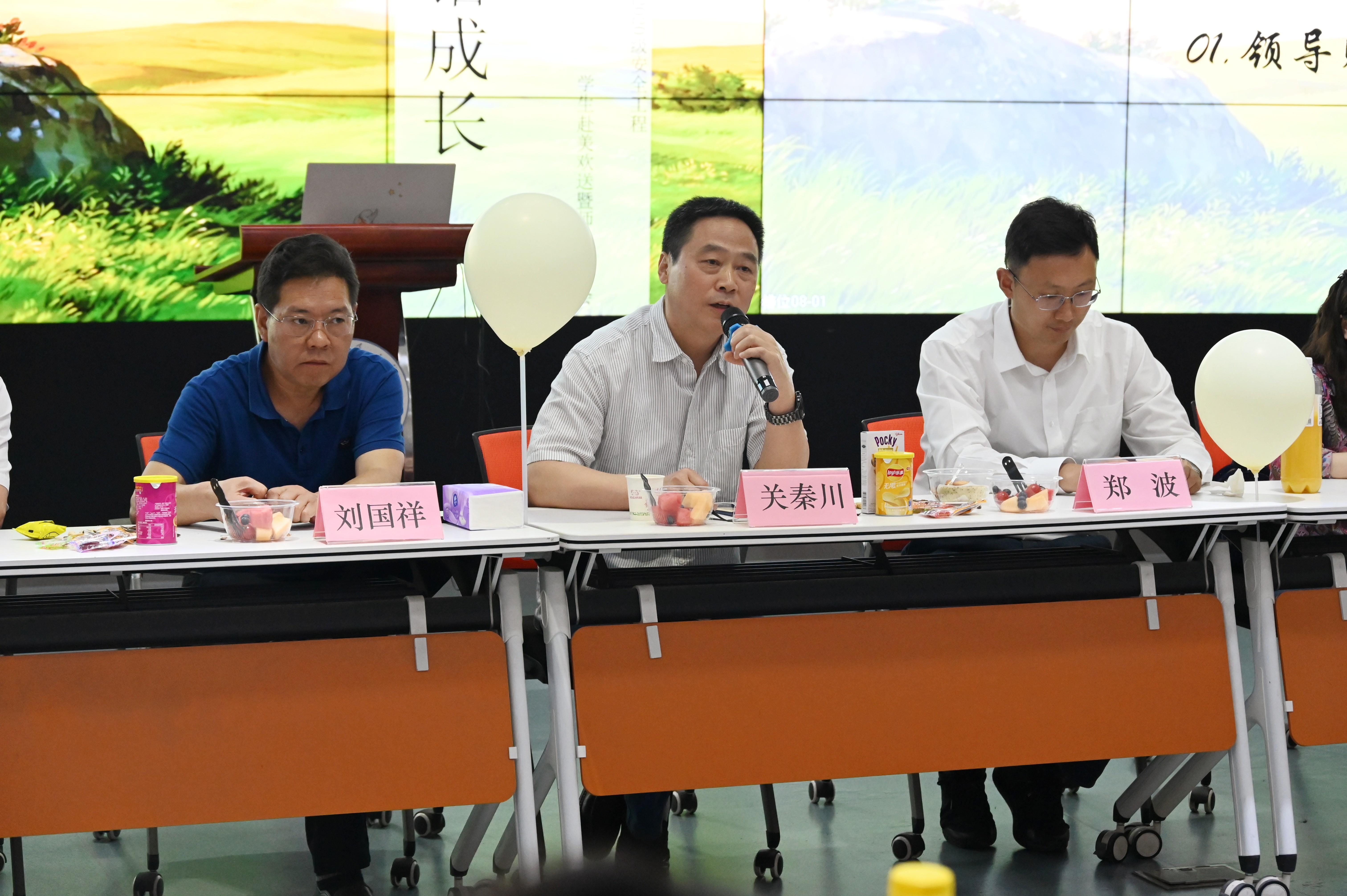 接着,关秦川书记提出了对同学们的四点希望。第一,希望同学们争做新时代践行者,牢记家国情怀,把个人小我和国家大我结合起来,彰显交大人之大气;第二,希望同学们成为学院的先行者、前辈,学习中美教育管理理念的不同,将好的方法带回来建设学院;第三,希望同学们成为中华文化的传播者和践行者,勇于发声、善于发声;最后,关书记希望同学们常报平安,常报自己的学习感受,并祝同学们身心健康、平平安安。