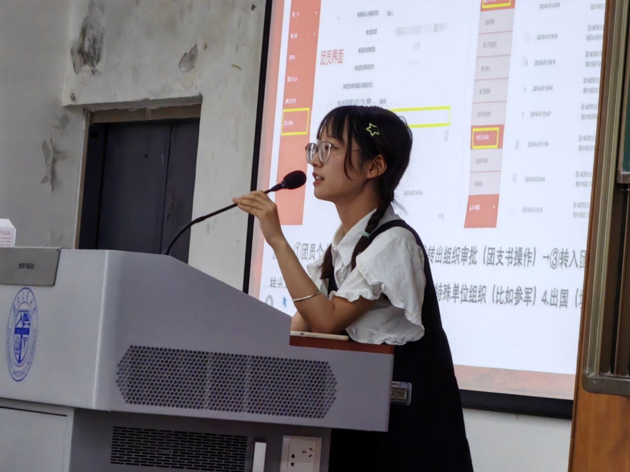团委书记杨都强老师主讲“从大学到社会如何健康成长·走向成熟”专题讲座;第二部分,团建中心指导老师张婷开展毕业生团组织关系转接工作相关指导。