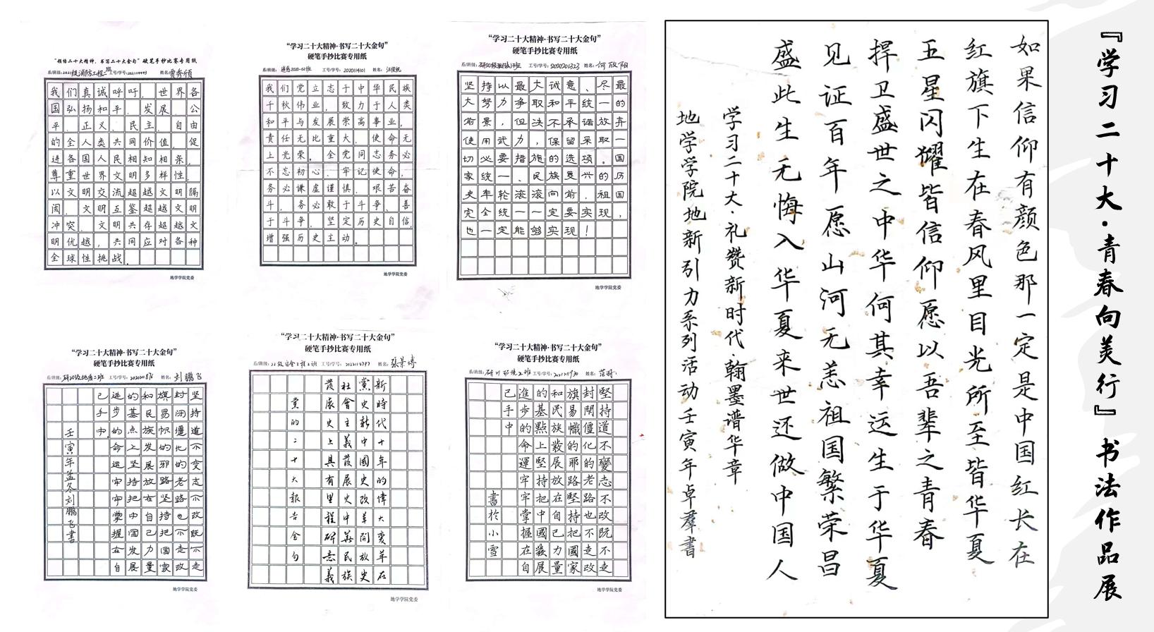 值此全党深入开展学习贯彻习近平新时代中国特色社会主义思想主题教育之际,为学习贯彻习近平总书记在文化传承发展座谈会上的重要讲话精神,落实立德树人根本任务,培养德智体美劳全面发展的社会主义建设者和接班人,让新时代新青年,在自然之美、文化之美、生命之美、劳动之美中丰富思想、塑造人格、汲取力量、坚定信念,笃行不怠追求更有价值、更有境界、更有格调的人生。地球科学与环境工程学院于6月5日至7日在四教中庭成功举办了“学习二十大·青春向美行”美育专项作品展。蘑菇视频
