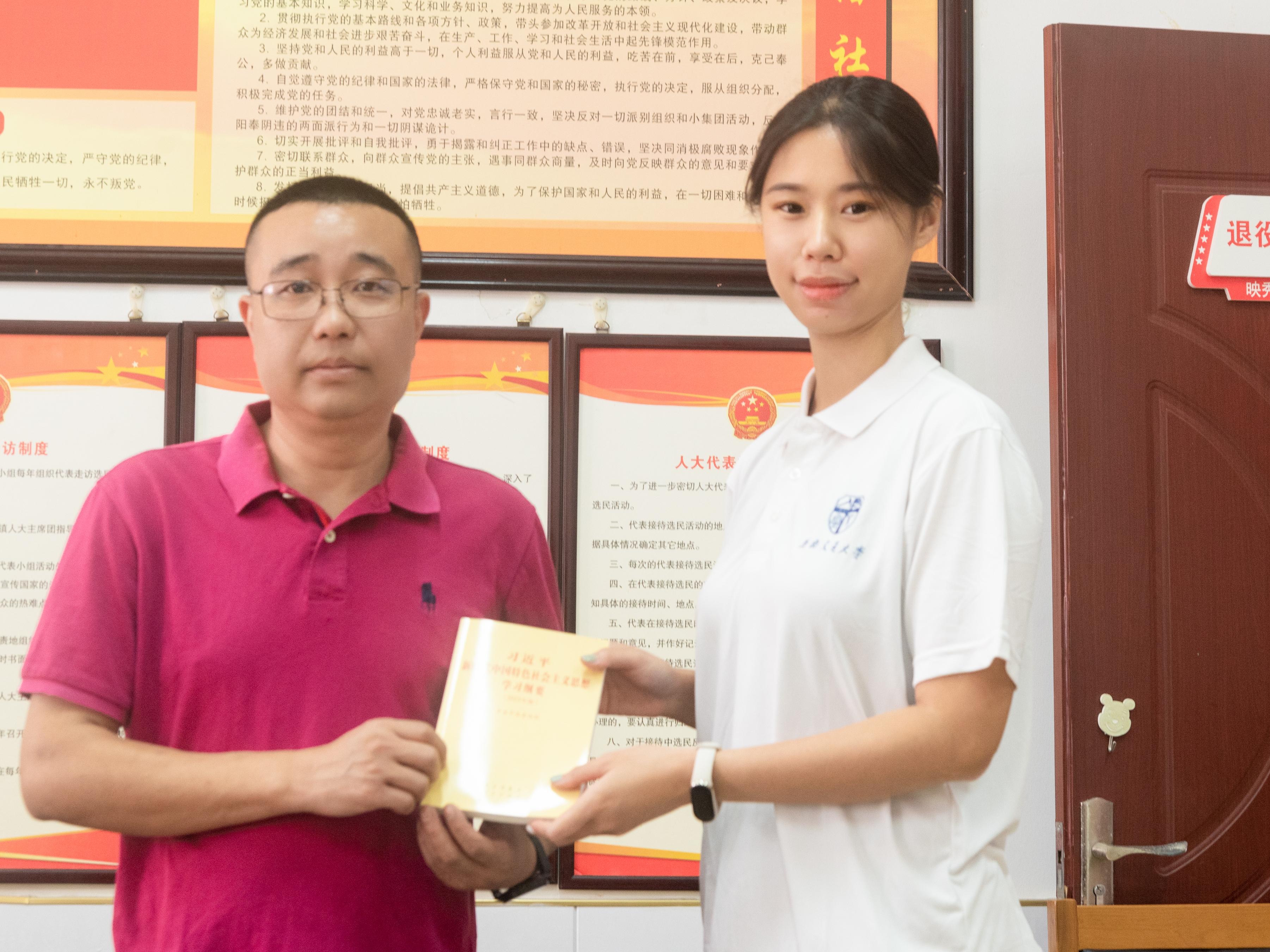 8月13日上午,团队抵达映秀镇秀坪社区。在社区的协助下,团队展开了赠书仪式。作为“铸牢中华民族共同体意识”的宣传起点,团队向秀坪社区赠送了包括《习近平新时代中国特色社会主义思想学习纲要》、《非彼无我 美美与共:中华民族的交融与共同体意识》、《铸牢中华民族共同体意识下西部地区地方政府能力建设》、《毛泽东选集》在内二十余本书籍,旨在引导更多人深刻理解有关民族工作的思想,培养共同体意识。秀坪社区副主任邹强代表社区接收赠书,并表示书籍非常有意义,十分感谢蘑菇视频