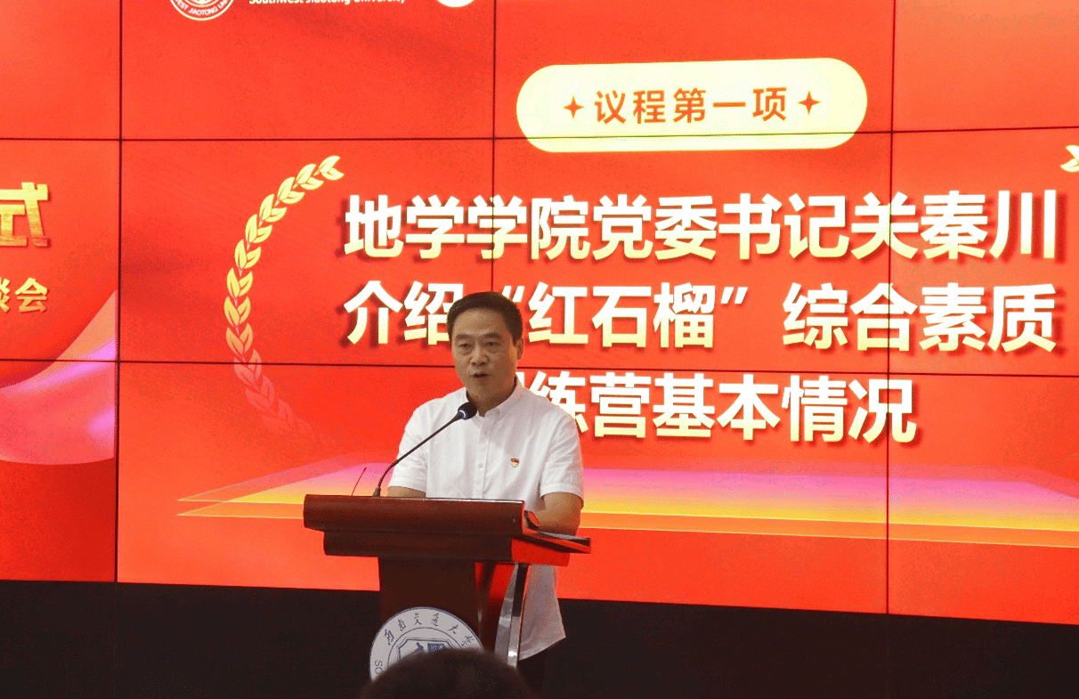 在犀浦校区举办“红石榴”综合素质训练营开营仪式暨“迎中秋·庆国庆”铸牢中华民族共同体意识主题座谈会。学校党委常委、党委统战部部长汪铮,地球科学与环境工程学院党委书记关秦川和校团委、党委学生工作部等相关领导,以及训练营营员、来自15个民族大一新生们参加活动。该活动是学校铸牢中华民族共同体意识精品项目之一。