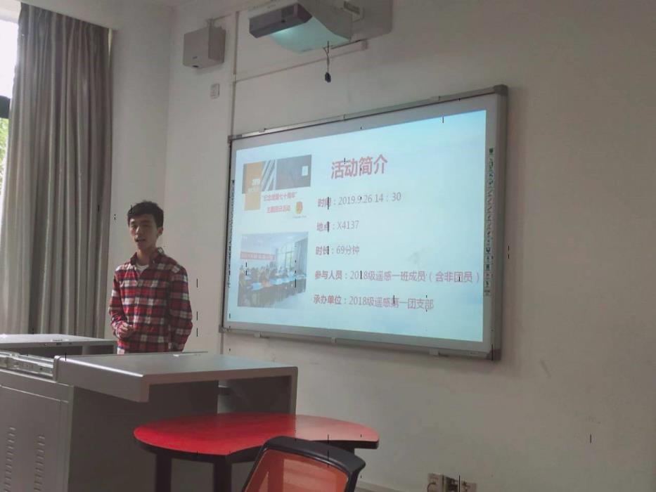 各个团支部的答辩都非常精彩,答辩会场掌声阵阵。其中,2018级遥感第一团支部的答辩人林其炜在答辩过程中表达清晰,逻辑性强,展示了该团支部在本次团日活动中的创新所在。该团支部举办团日活动不落俗套,用影片唤醒大家的爱国情怀,使每位同学表达出对祖国的热爱,附于气球放飞蓝天,对祖国进行告白。