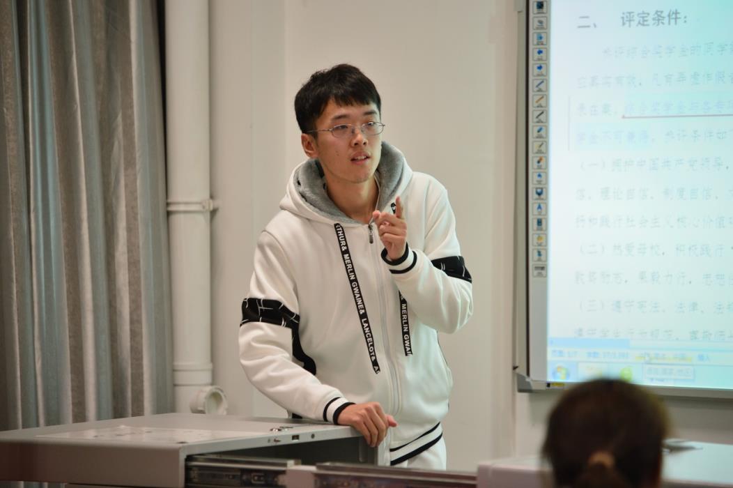 汪鸿浩向同学们就日常学习、科研与竞赛、社会工作和综合素质四方面展开本次经验交流,并向同学们介绍了毕业后工作的单位及继续深造的学习方向。
