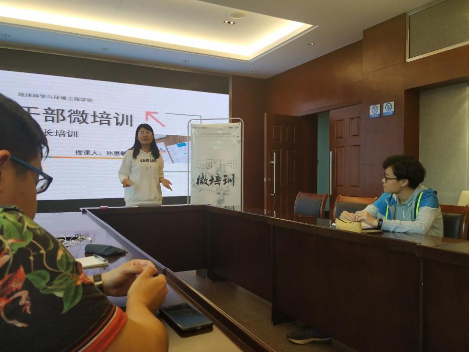 班长第一次班团干部微培训,培训老师为孙慧敏老师,她为学院17级和18级各班班长进行了培训。老师主要从学风建设、班风建设、寝室氛围以及寝室同学关系、团日活动跟自身发展五个方面对班长们进行了培训。