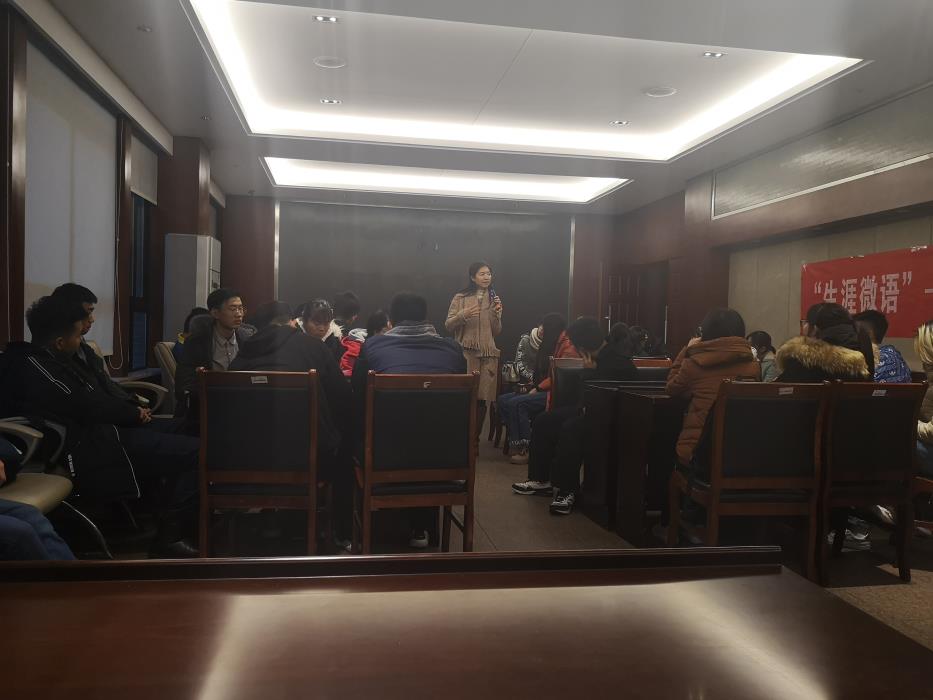 2018年12月5号星期三下午五点半,地球科学与环境工程学院菁英课堂选修模块之职业生涯讲座在X4520开展,本次的主讲老师是来自招生就业处的彭老师,在做过简单的自我介绍过后,彭老师直入主题,给大一的同学们介绍职业生涯规划。