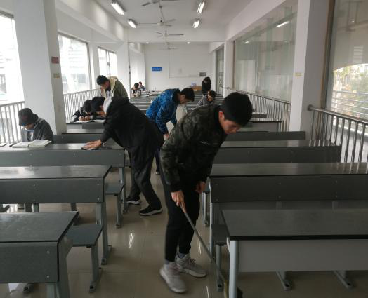 清扫完第一个自习室后,每一个同学都感受到了自习室前后的变化,现在的自习室让人感到更加的舒适,仿佛自习效率也得到了提高。虽然我们班又跑了几个不同的自习室,但是由于时间与人手的问题,并没有将所有的自习室打扫完,为此我感到十分遗憾。