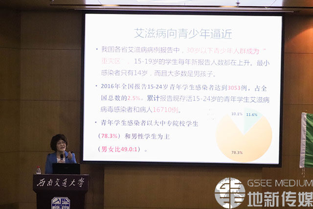 10月17日晚7时,地球科学与环境工程学院于图书馆一号报告厅举办了“青春同路·与艾同行”入学教育宣讲活动及心理健康教育。成都市疾控中心性病与艾滋病防制科科长何勤英、蘑菇视频