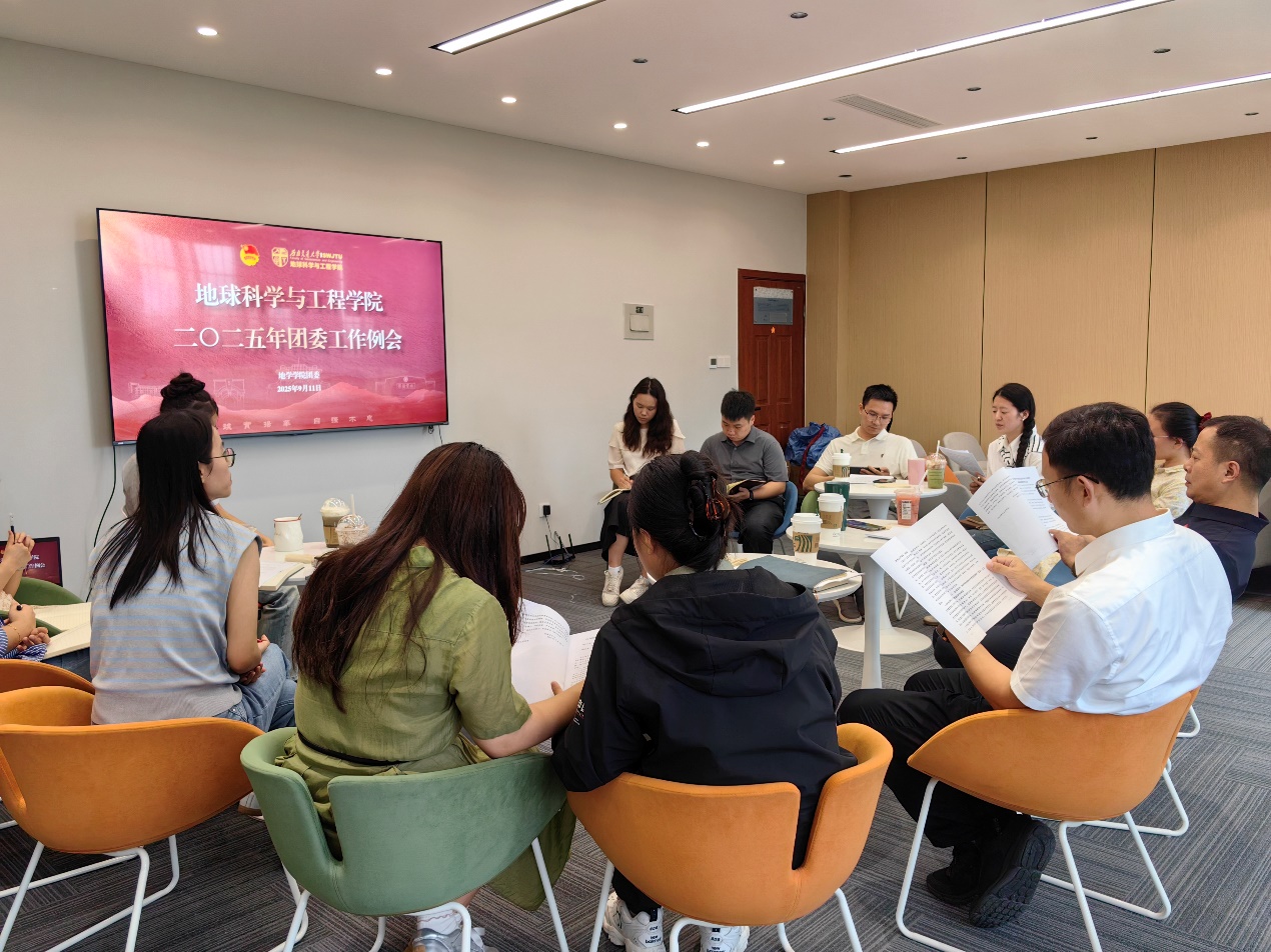 团委在X4555组织召开2025年秋季第一次团委工作例会。学院党委书记郑简平、党委副书记郑波及学院团委相关老师出席会议。会议由团委书记杨都强主持。