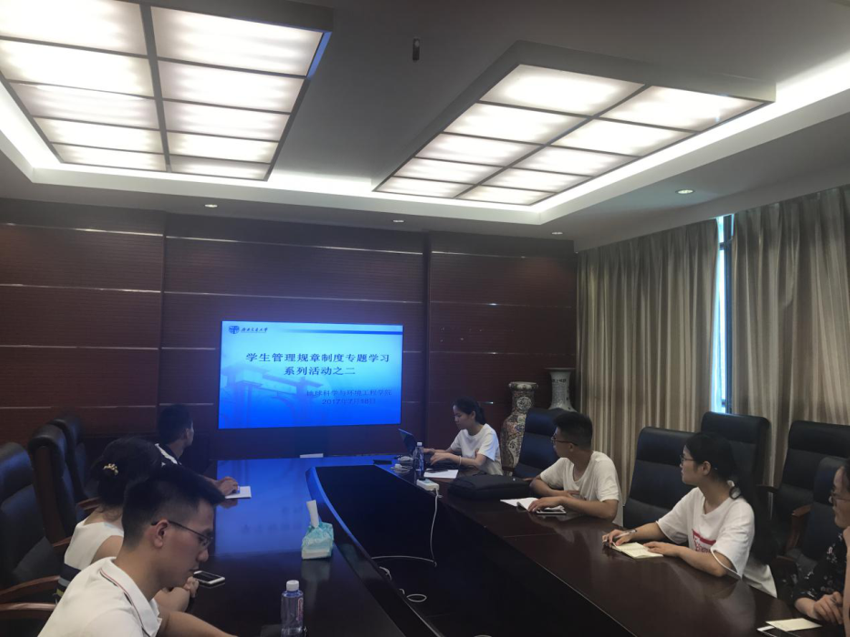 2017年7月18日下午,地球科学与环境工程学院学生工作组在学院4531会议室开展第二次学生管理规章制度专题学习系列活动,蘑菇视频