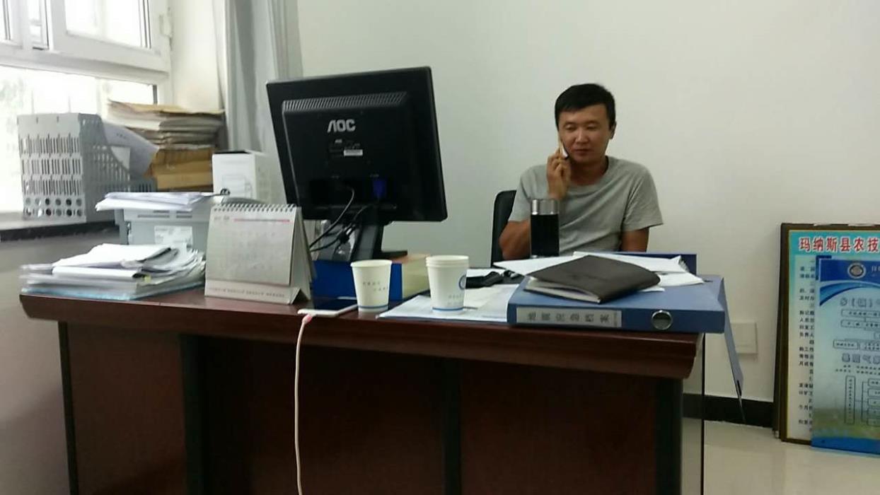 杨都强老师受到了校友哈那提·穆哈提热情迎接,并在哈那提办公室进行了交谈。杨老师表示,学校很关心校友的发展,希望校友在外一切顺利,努力工作,干出业绩;也希望校友多关心、关注学校的发展,为学校建言献策。哈那提对于学校老师关心并亲自走访表示很感谢,同时聊到自己两年前通过新疆“天池计划”来到清水河子哈萨克民族乡团庄村成为一名大学生村官,得到了很多锻炼,虽然在基层工作中经常遇到困难,得益于母校的培养,会以积极的态度面对,用真诚的行动克服,工作成绩较好。也因为如此,近期被提拔为乡政府农业、畜牧业及林业发展办公室主任,在新的岗位上希望能继续为人民办好事,服好务。他表示,在基层工作最大的困难来自乡民的思想意识转变困难,虽然今年来随着党中央、国务院的政策导向及多方面的宣传解说,有一定好转,但很多工作开展还是存在一定的阻力,但他表示自己和同事都有信心尽快改变这一现状,尽全力创造新的业绩。杨都强老师听后,针对哈那提基层工作现状及问题进行了深入了解并认真记录,时不时给予一些建设性意见和建议。