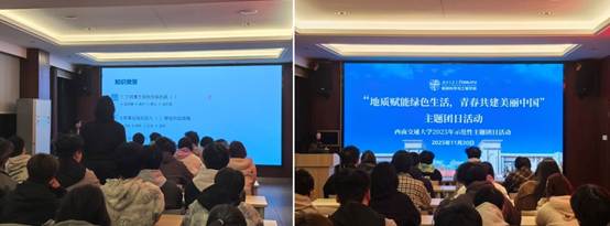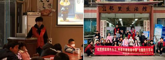 2024级地质第三、第四团支部于2025年11月-12月开展以“地质赋能绿色生活,青春共建美丽中国”为主题的示范性团日志愿服务活动,组织支部成员走进伏龙社区和方碑社区,以趣味科普与手工实践相结合的方式,带动居民践行低碳环保的生活方式。