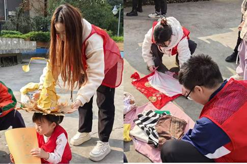 随后,11月底支部成员走进伏龙社区,支部成员以及社区居民提前共同收集了树叶、废旧T恤、空矿泉水瓶等可回收材料,为手工创作积攒了丰富素材。