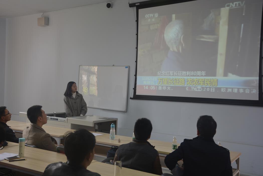 研究生学生会全体成员在X9135课室举办了纪念“长征胜利80周年”的主题活动,活动以“铭记历史,缅怀先烈,珍爱和平,开创未来”为主题,将红军长征留下的精神财富传承下来,并将长征精神落实到实际工作和学习中去。