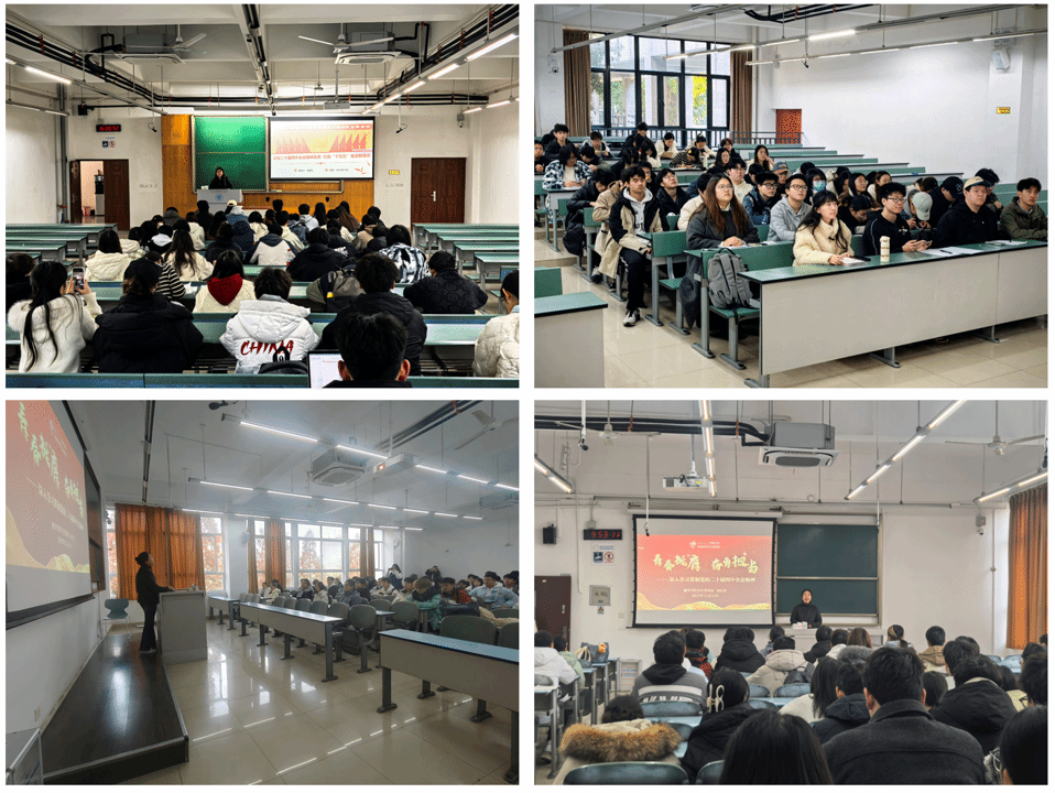 于2025年11月至12月全覆盖学院本研团支部开展了系列宣讲活动。活动以“深悟二十届四中全会精神实质,扛起‘十五五’奋进新使命”为核心主题,通过多场专题宣讲、互动研讨,推动党的创新理论走进青年、深入人心,引导广大团员青年将个人理想融入强国建设、民族复兴的宏伟征程。