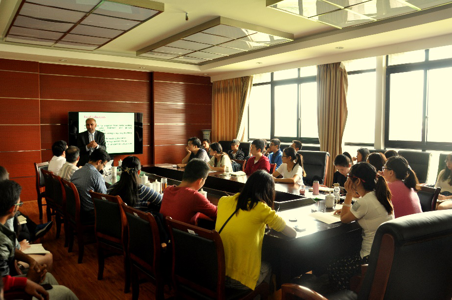 Hossein Ganjidous来自伊朗,讲座上他简单首先介绍了伊朗的一些基本情况。其次他重点阐述了伊朗的水污染情况以及伊朗人们是如何处理水污染的。并和参加讲座的学者交流了相关水处理的方案。