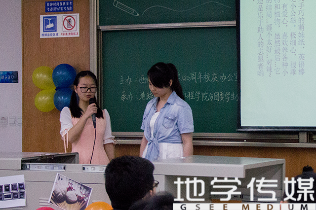 大赛由地学学生会承办,以此迎接交大120周年校庆,回顾校史及交大文化。比赛按照:作品展示,宣布成绩,校史问答,颁奖仪式四个流程进行。比赛中,选手先结合PPT进行自我介绍和作品介绍,后进行才艺表演,评委及观众进行评分,综合给出成绩。