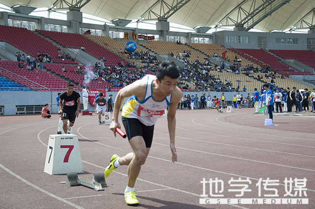 待男子组比赛结束以后,学生甲组女子4X400米接力赛决赛也正式展开。“各就位,预备”,发令枪响,我院第一棒选手如离弦之箭一般飞奔了出去,快速而准确地将接力棒传到下一位选手手中。第二、第三棒的交接也十分地完美。第四棒选手则迅速接起最后一棒向前奔跑,力求保持第四名的优势。最后,我院女子接力收获了总排名第五的成绩。