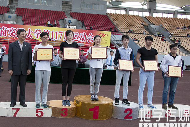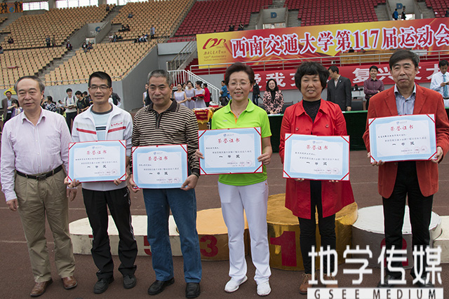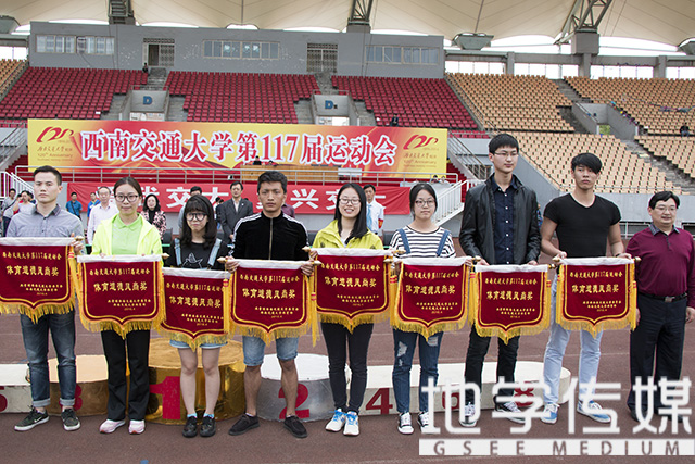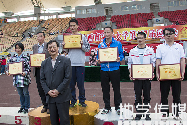 “地环学院排名第五名,荣获一等奖”——校工会郑江副主席,党委办公室主任甘灵,校工会副主席盛鹏宣布入场式评比及获奖单位,并为我院颁奖。“此次运动会很好地提高了同学们的团结性,增强了我们的荣誉感,也让我们认识到了诸多新朋友;同时,这也是一个让我们强身健体的好机会。”一位全程关注比赛的学生如是讲到。校团委朱剑松书记也表示:“运动会是让学生们走出寝室的动力,是让学生们增强奋发意识的机会。”