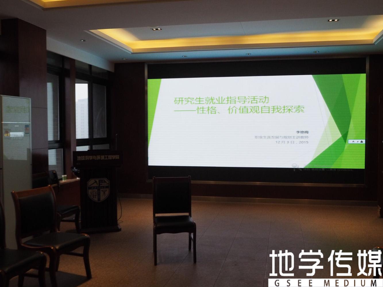 2015年10点30分,一场面向地球科学与环境工程学院2015级研一学生开展的就业指导讲座在X4520教室举办。这次活动邀请到就业指导中心的李艳梅老师,在讲座上,她不仅与同学们讲述了职业生涯发展与规划中一些经验和问题,而且帮助同学们在职业生涯发展中探索自我性格与树立正确的价值观,现场气氛热烈。