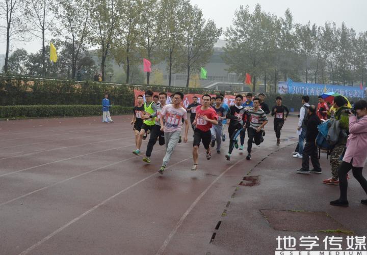 11月14日下午4:10,男子1000米的比赛在北区田径场举行,代表地院参赛的选手有周文、尹子旭等。天气不算太佳,飘着毛毛细雨,但是运动员们激情不减,用毅力前行。