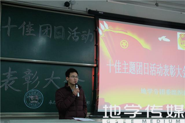 为了激发同学们参加团队活动的激情,同时激励先进,鼓励优秀,2014年12月11日19:00,地球科学与环境工程学院2014—2015学年度第一学期十佳团日活动表彰大会在X2527隆重举行。大会由地学分团委主办,地学分团委组织部承办,地球科学与环境工程学院辅导员杨都强出席了本次大会。