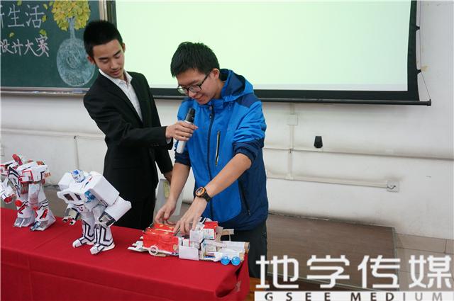 比赛伊始,主持人介绍了比赛规则。各组选手结合PPT进行自我介绍与作品介绍,随后参与环保知识问答,再由评委提问并点评。随着选手的登场,各种新奇有创意的作品陆续出现:“废纸品”汽车人上演现场变形、废旧纸张变身朵朵鲜花、飘落树叶绕出时光藤蔓、“易拉罐”星空瓶绽放动人光彩……随后的智力问答环节同样精彩,各方选手斗智斗勇,2号简单低碳队表现出色,5题全部答对,观众报以热烈掌声。