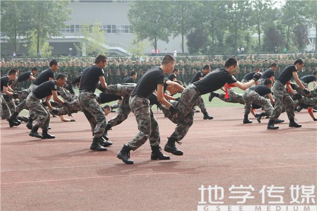 部分男生和土木学院部分男生组成的二营十二连作为代表进行了军体拳汇报表演。