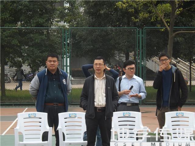10月17日中午12点30分,天气晴朗却不炎热,但北区篮球场的气氛已经达到高潮。在众多同学的围绕下,地质一班与地质二班的冠亚军争夺战正式拉开了序幕。地学党委副书记傅尤刚老师、地学团委副书记陈艳艳老师、辅导员田凤晓老师、闫剑老师、杨都强老师、学生会主席浦佳许等亲临比赛现场观看了这最后一战。