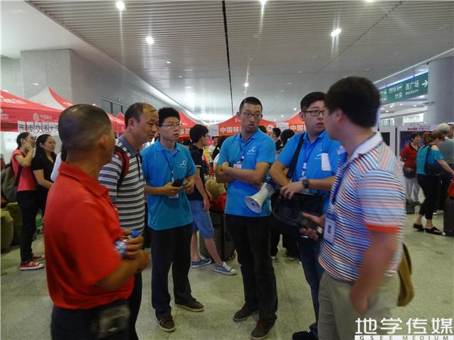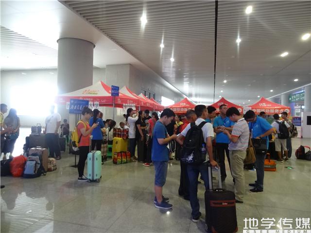 确保每一班火车的新生及家长都到出口后,工作人员便带领他们到集合点休息,由何杨老师对校车的接送情况做一个简单的介绍和安排。接着工作人员便带领着他们乘坐校车来学校报道。