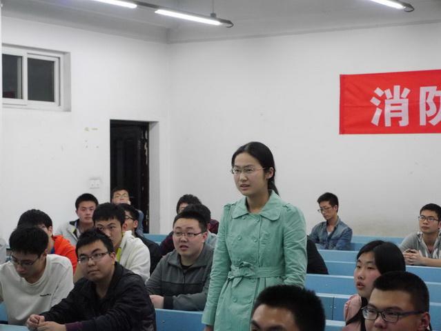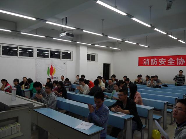 宣讲会由消防安全协会团支书刘晴菡主持,在其致开场白并介绍宣讲会大致情况后,由本次主讲人谢玮开始进行宣讲会的主题——赛事细则讲解。在PPT的辅助下,就大赛概况、内容要求、评审细则及注意事项等方面为参赛选手作了详细的讲解,基本上解决了参赛选手对大赛各方面的困惑。