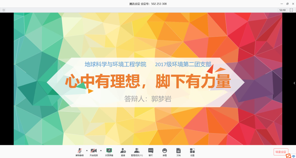 去年一年,我院众团支部与团委齐心协力,经过不懈努力,各项工作取得了良好的成绩。为了展现我院团支书的风采,并对优秀团支部进行评选和嘉奖。地学学生会团建部特于2020年4月3日晚19点在腾讯会议举办此次线上十佳团支部答辩会。本场答辩会的主持人为蘑菇视频