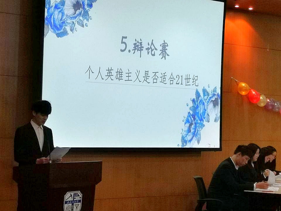 本次辩论所讨论的是当今世界是否应推崇英雄主义。英雄作为正义的化身,不仅拥有卓越非凡的能力,同时也彰显着强烈的个人特色,有鉴于此,个人英雄主义理想观点和主张始终得到热烈的吹捧,然而,随着时代的变革,人们在工作和学习上都开始讲究团体的精神,群体力量和个人英雄主义所形成的这个张力,究竟是对立还是相融,是互相抵触,还是相辅相成,这便有了今天的讨论。