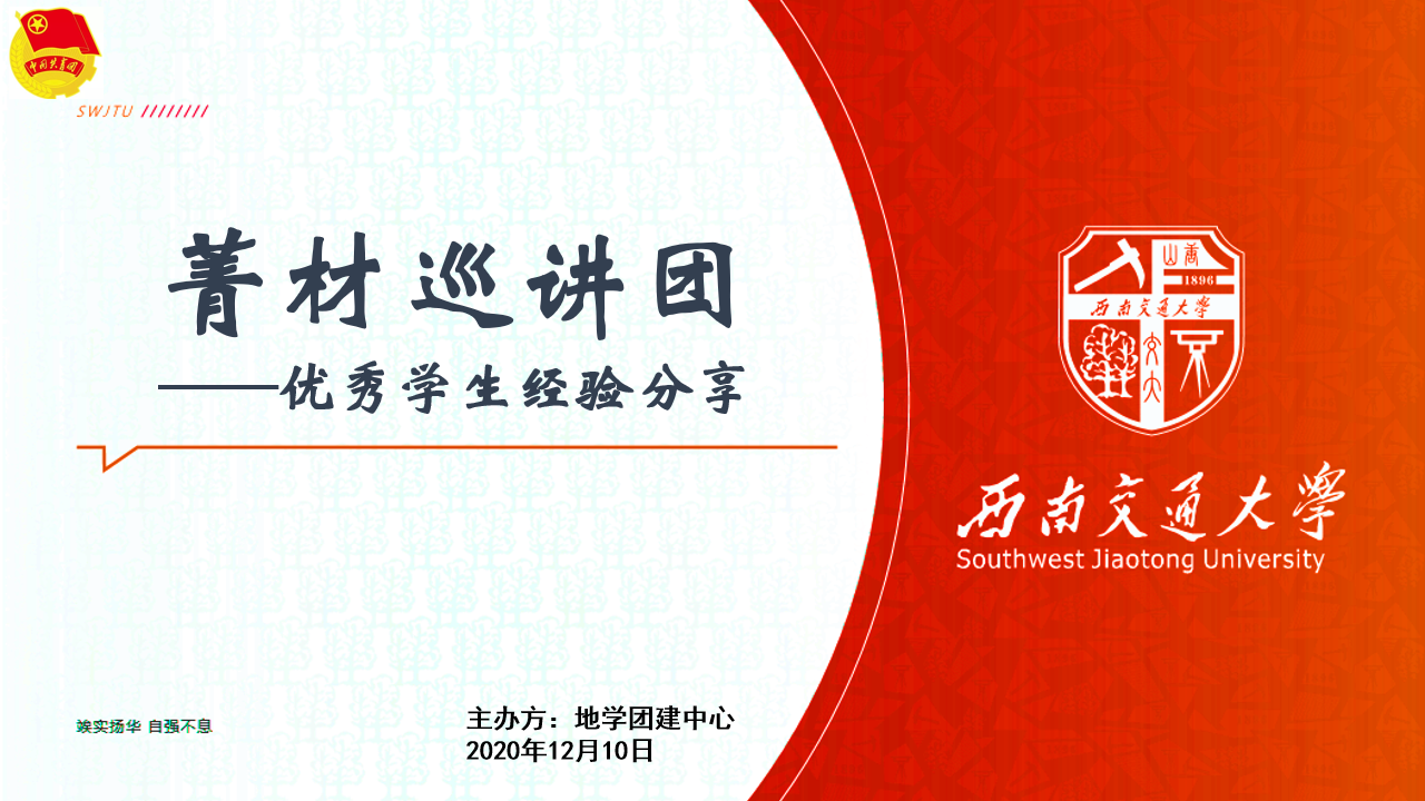 此次分享会邀请到了竢实扬华奖获得者徐琦同学,国奖获得者杨碧红同学和地学青协会长陈珂为20级本科大一新生进行经验分享。其目的是为了强化,“大抓思想政治引领”的政治责任,全面深化青年思想政治引领,推树先进典型引领青年,令学生们有更好的发展。
