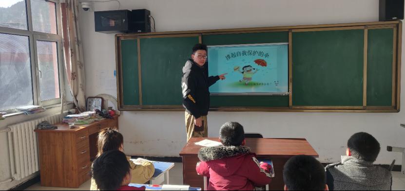 2021年1月16日,实践队首先开始对在校学生们进行了自我安全防护教育,在自我安全防护教育中,队员为学生们具体讲解了生活中的种种安全隐患和危险事情,并向学生们讲解了在面对具体的安全危害和侵害时应该如何合理合法地保护自己的权益,并强调在任何时候都要首先保证自身的安全,告诫每位学生自身安全是一切保卫自身的前提。并与同学们一起制作了校园安全的黑板报。